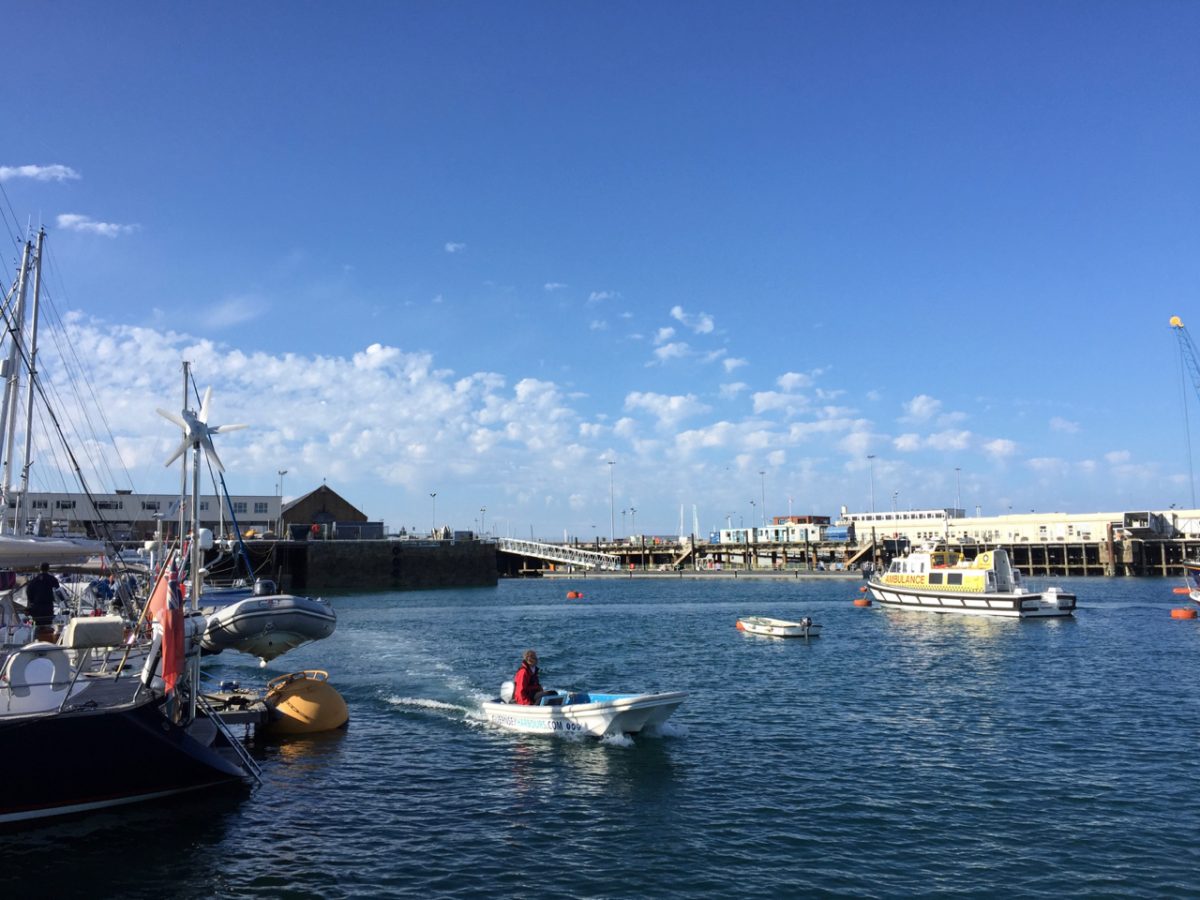 Actually the trip to St Peter Port was incredibly easy. Our speed on the way averaged around 8 knots, as it was a spring tide (fast flowing current). And we could see for miles. Nor did we hit anything on the way or in the marina.